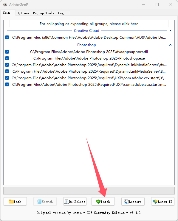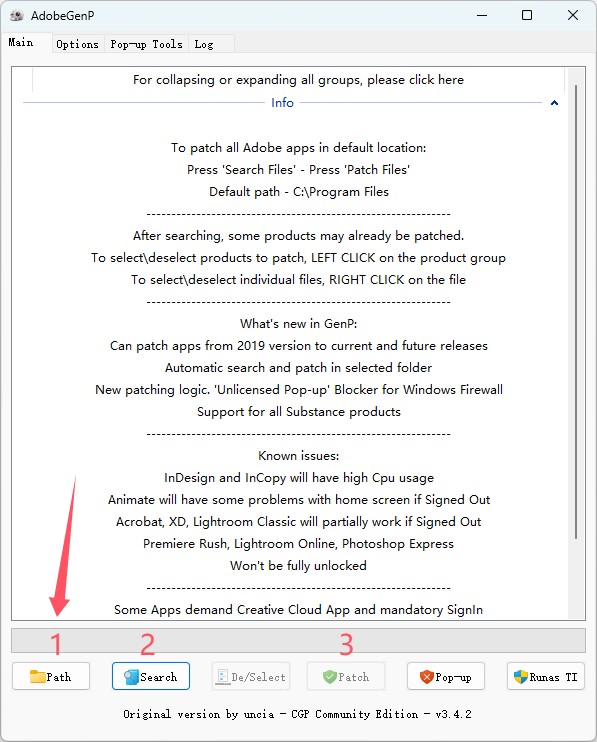- 下载解压后打开\Release\AdobeGenP.ex
